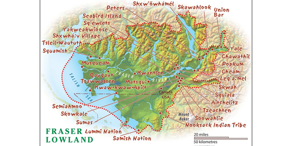 The Fraser Lowland lies within the ancestral territories of the Stó:lō Peoples, part of the broader Coast Salish cultural family. Much of this land is unceded and continues to be stewarded by diverse Indigenous Nations whose governance, languages, and relationships with the land remain vital today.